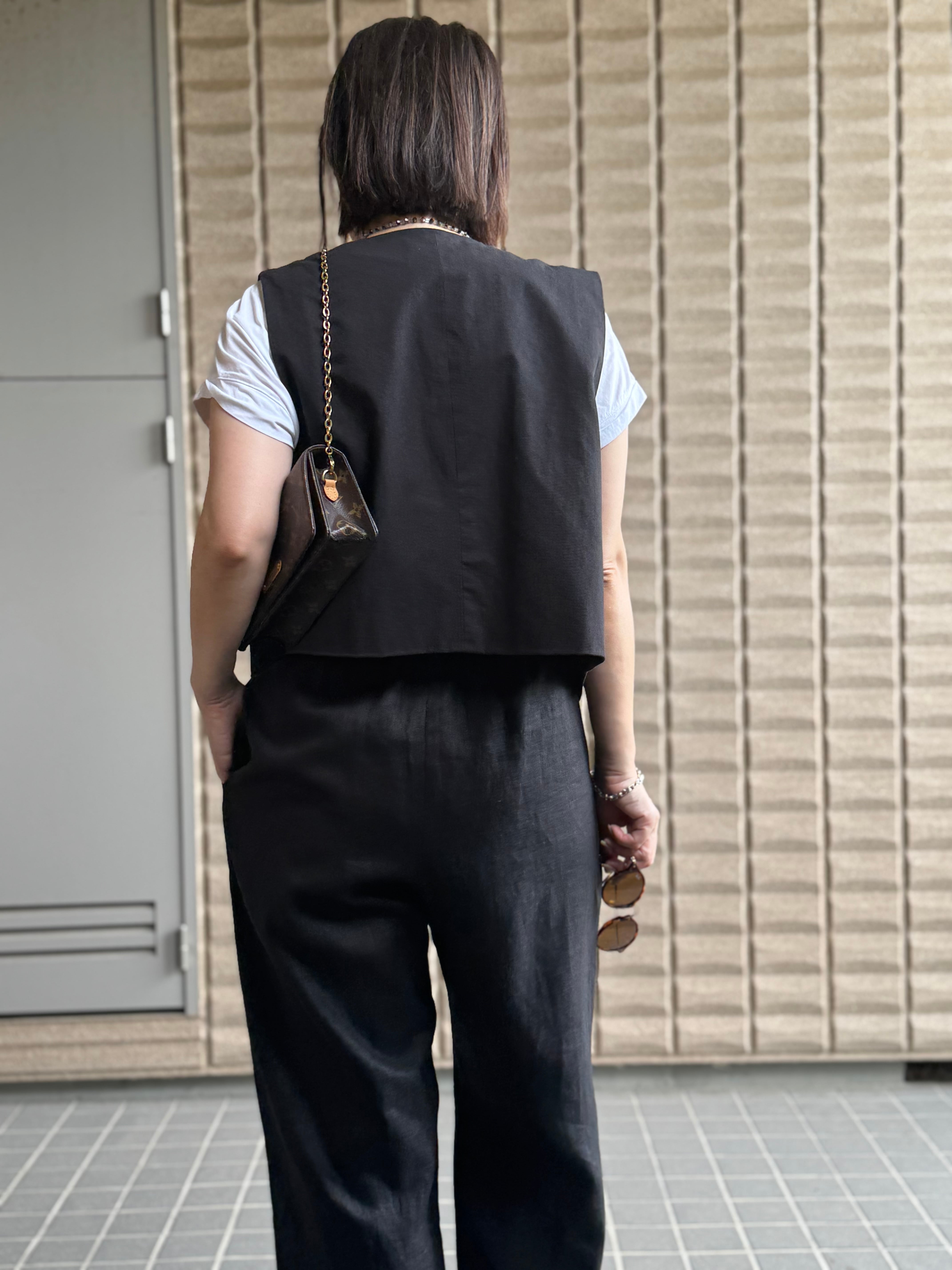 レイヤードするだけでお洒落に決まるUネックボタンベスト