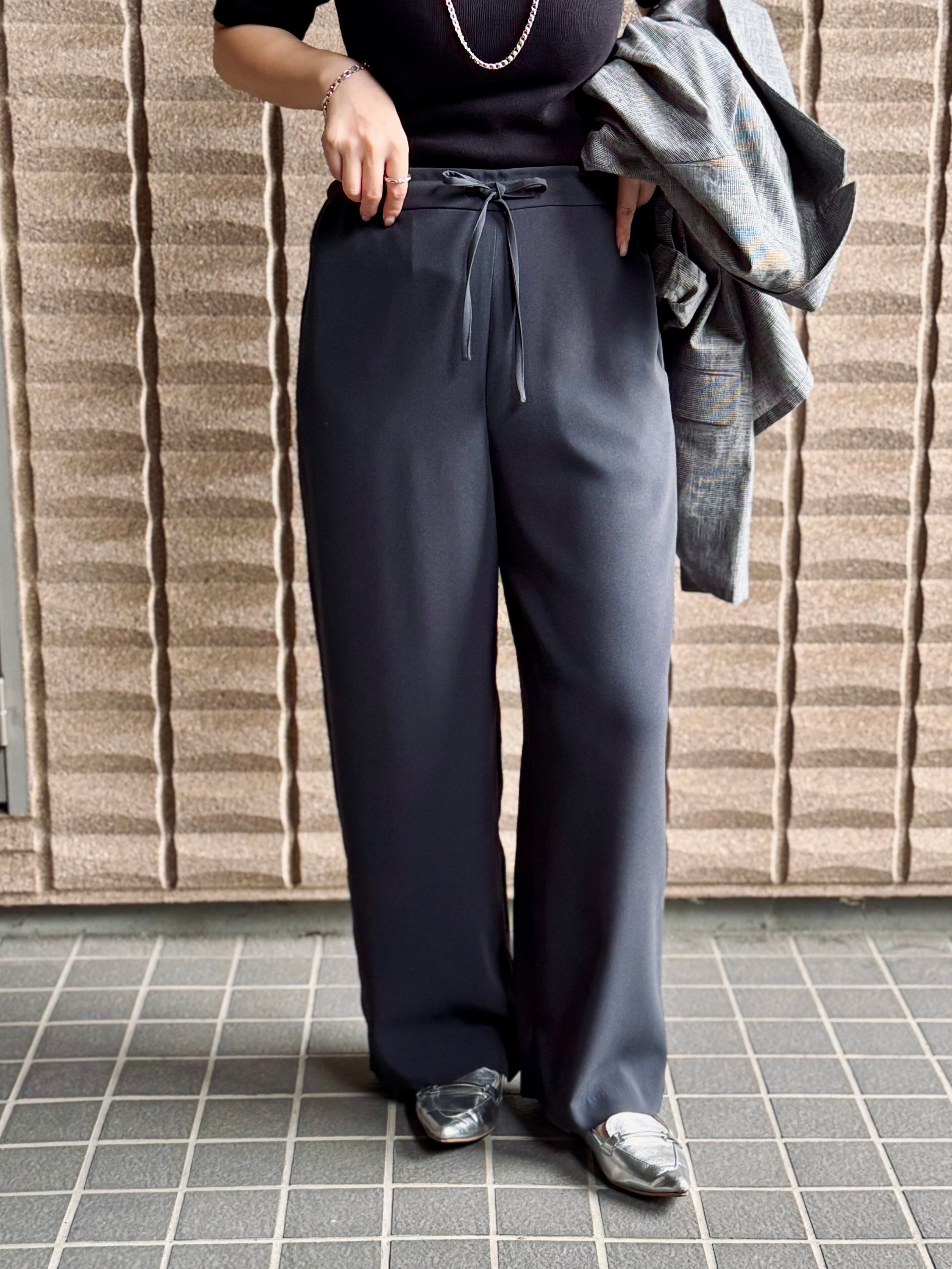 DONEEYU(ドニーユ) バックサテンジョーゼット ドロストストレートパンツ